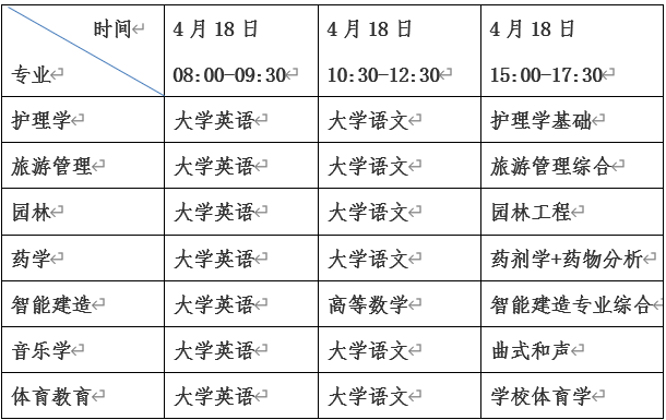 音乐学专业的加试科目4《术科专业测试》测试地点:李子园校区伯牙楼,开始时间4月18日18:00,按williamhill威廉希尔官网2026年音乐学专业“专升本”术科专业测试(面试)考生须知要求执行。体育教育专业的加试科目4《专业技能测试》测试地点:七里坪校区体育馆,开始时间4月18日15:00,按williamhill威廉希尔官网2026年体育教育专业“专升本”术科专业测试(面试)考生须知要求执行。