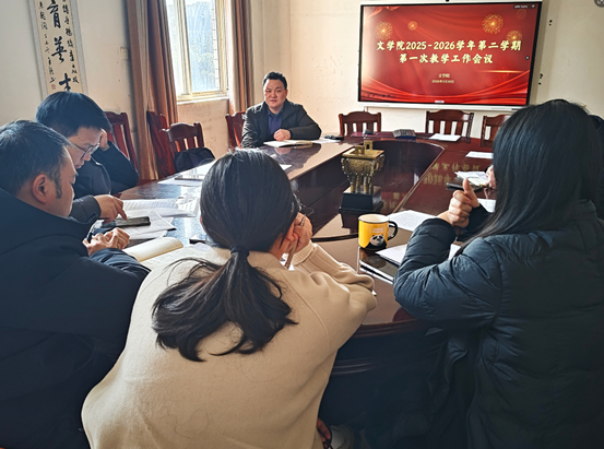 2026年3月10日下午,文学院在李子园校区办公楼503会议室召开2026年第一次教学工作会议,学院党政领导、各教研室新一届负责人及教务秘书参加会议。会议传达了学校第一次教学例会精神,重点布置了听课查课评课、教学督导、人才培养方案修订、教学竞赛、课程建设等工作。