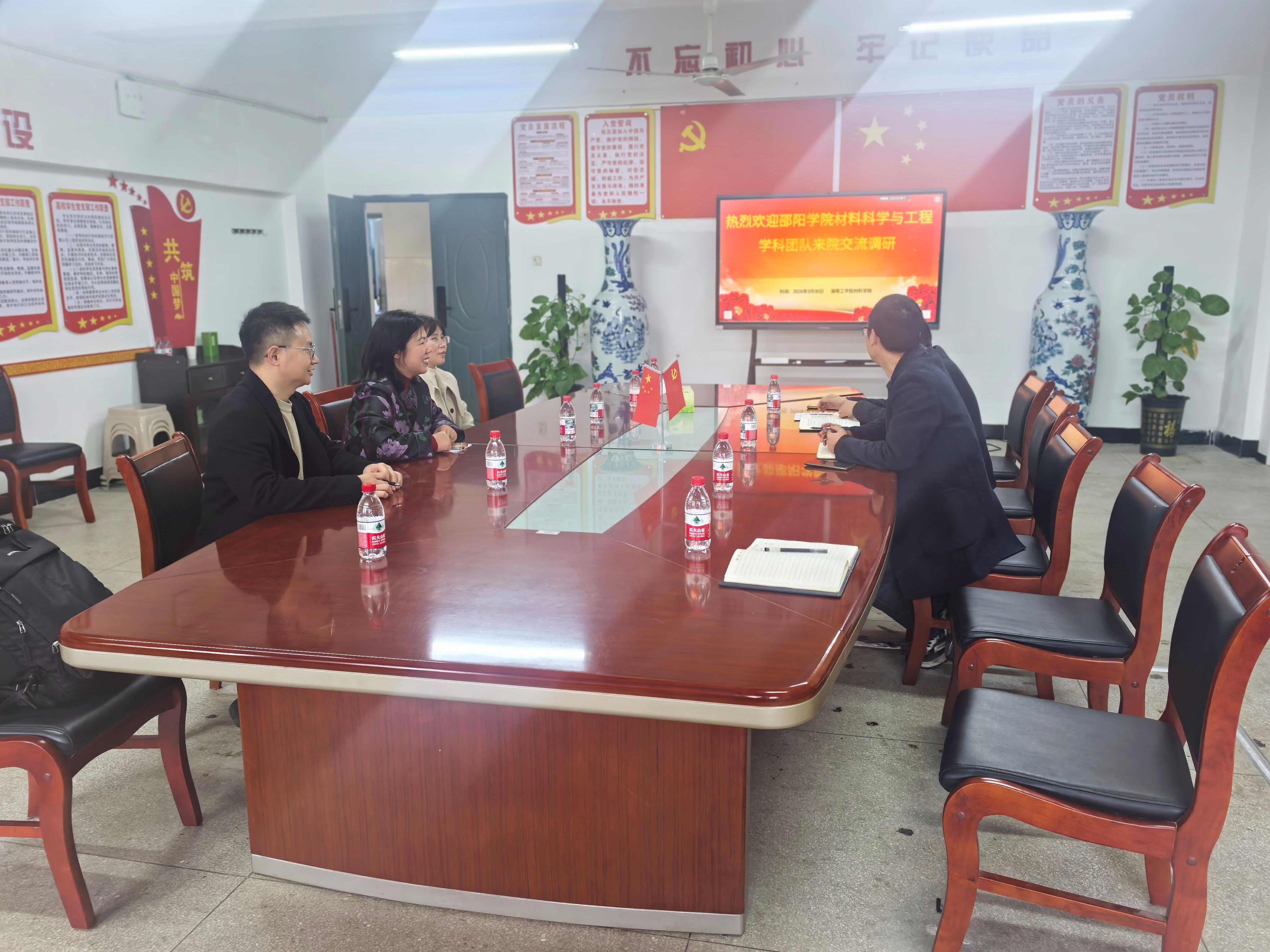 2026年3月31日,williamhill威廉希尔官网理学院副院长刘桂香、实验室主任唐鸽、教师代表黄首吉一行赴湖南工学院材料科学与工程学院和理学院开展调研交流。